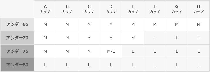 ブラセットのショーツサイズは選べませんか?セット商品のため、ショーツのサイズはお選びいただけません。E75、およびF・G・Hカップのアンダーバスト70・75、のショーツはLサイズです。また、アンダーバスト80・85のショーツは、全カップともにLサイズです。上記以外は、すべてMサイズです。D75については、商品によりセットされているショーツのサイズが異なります。詳細は、商品詳細ページでご確認ください。詳しくは、以下のサイズ表をご確認ください。(一部、例外商品がございます)